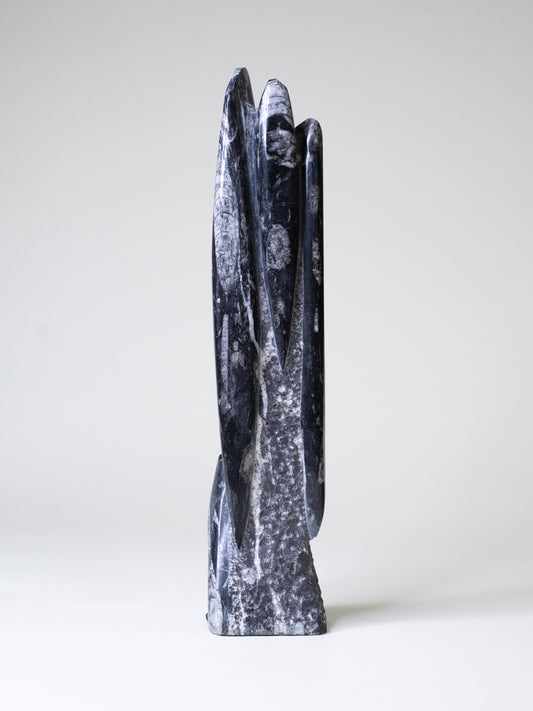 Tall Orthoceras Limestone Sculpture - Morocco, Late 20th Century