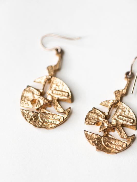 Vintage Brutalist Bronze Earrings by Jorma Laine, 1970s