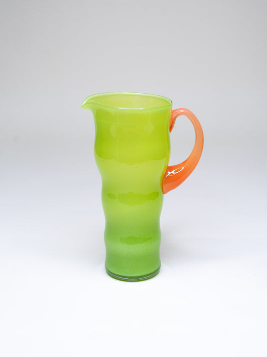 Wavy Lime Green Opaline Glass Pitcher with Orange Handle