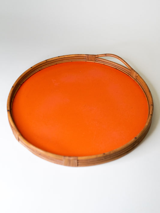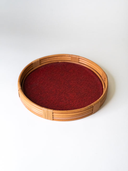 Vintage Round Rattan Tray with Red Base – Nordic, Mid-Century