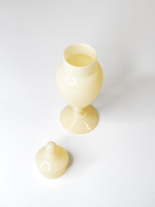 Vintage Yellow Opaline Glass Jar with Lid - Europe, Mid-Century