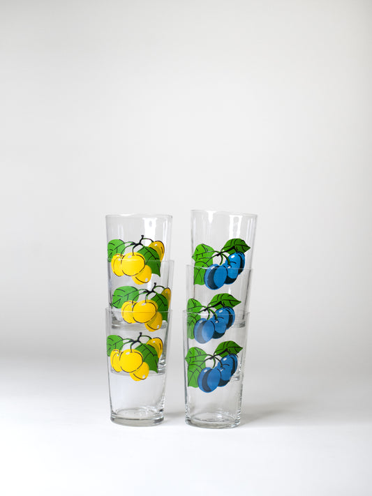 Hand-painted Mid-Century Fruit Glasses - Set of 6