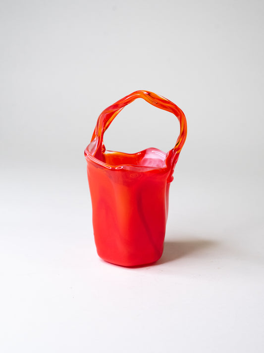 Handblown Cherry-Red Art Glass Basket - Italy, 1960s