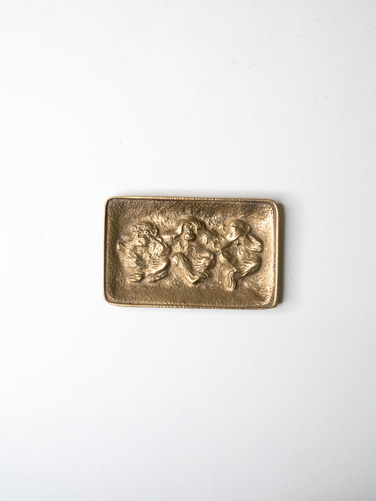 Vintage Brass 'Three Wise Monkeys' Dish by Peerage - England, Mid-Century