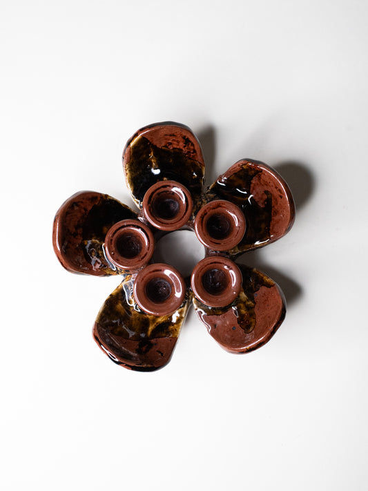 Pentik ‘Kaamoskukka’ Candle Holder in Brown/Ochre - Finland, 1970s