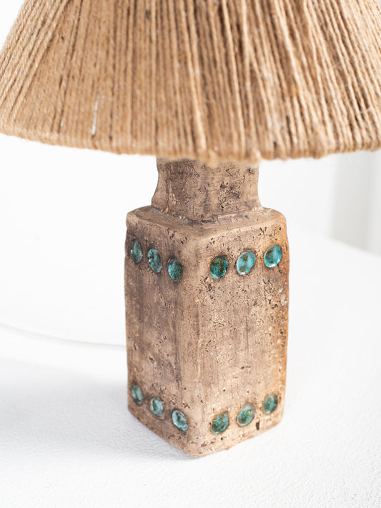 Ceramic Table Lamp with Jute Shade - Denmark, 1960's–70's