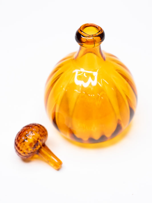 Mid-Century Amber Glass Decanter with Mushroom Stopper