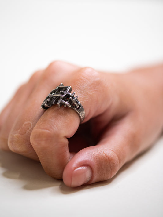 Brutalist Silver Ring by Gösta Kaplan - Sweden 1969