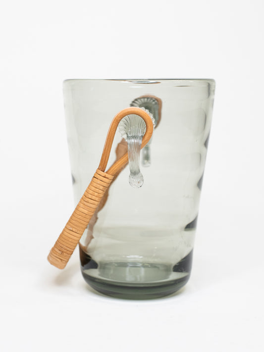Ice Bucket with Rattan Handle by Jacob E. Bang for Holmegaard - Denmark, 1960s