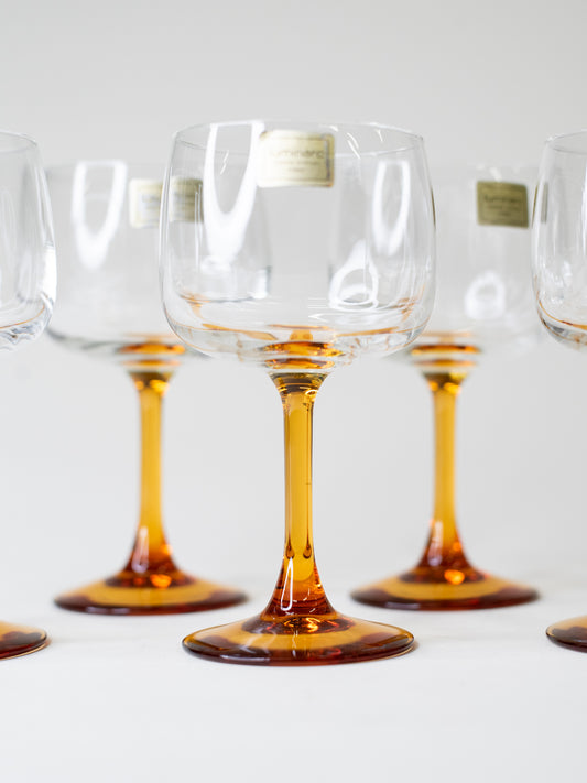Amber-Stemmed Wine Glasses by Luminarc, France 1960's - Set of 6