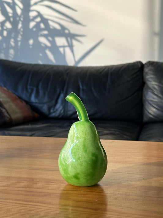 Vintage Pear in Bright Green Cased Glass