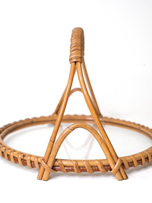 Finnish Rattan & Glass Tray with Handle