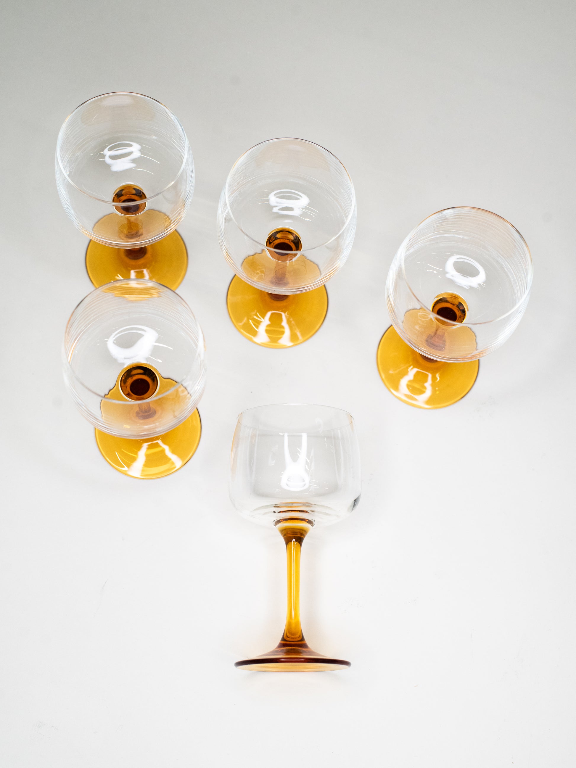 Amber-Stemmed Wine Glasses - France 1960's - Set of 5