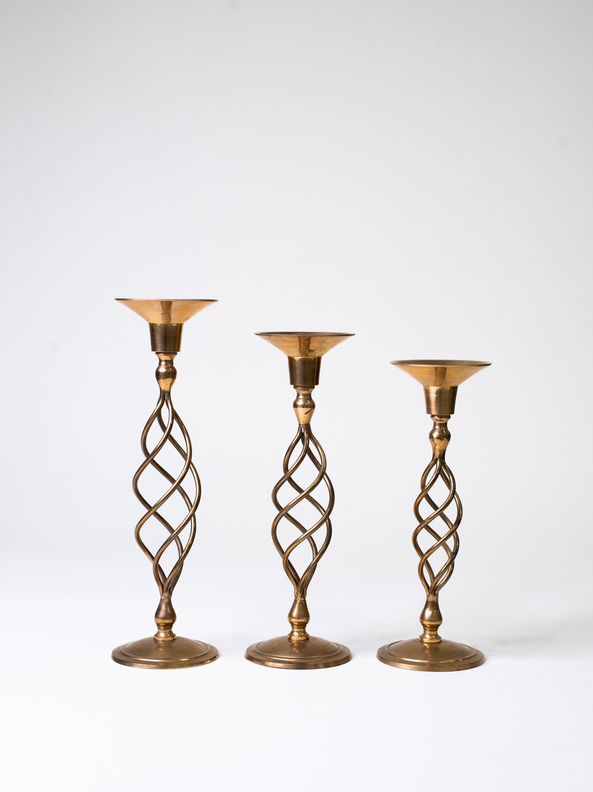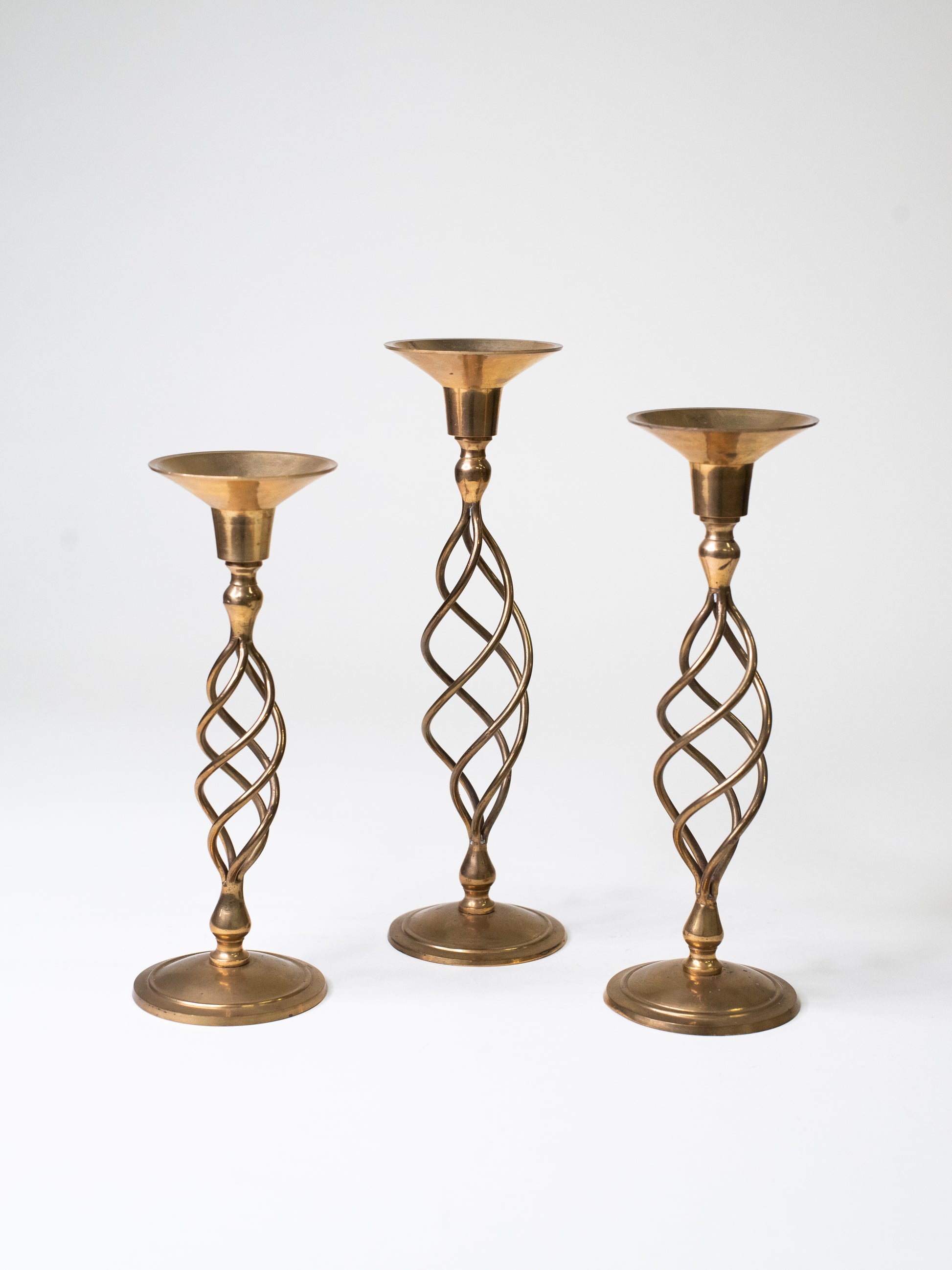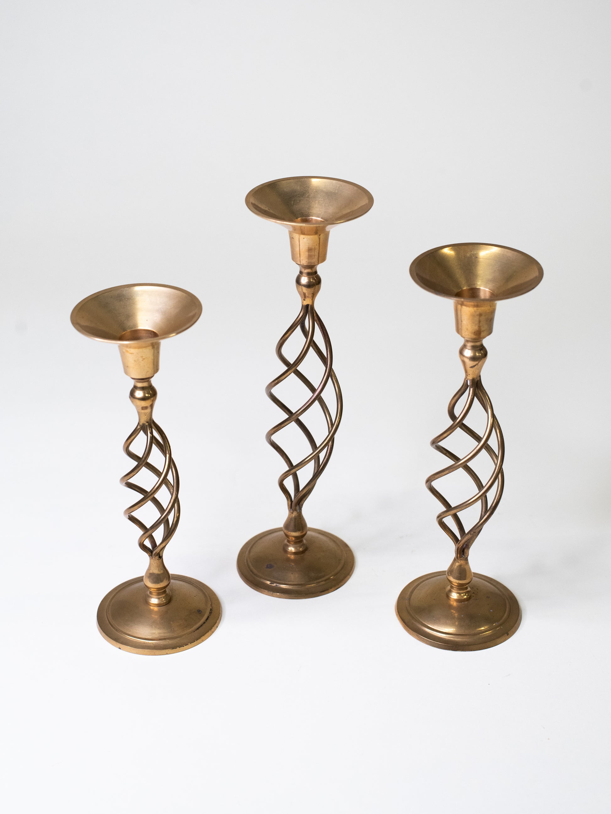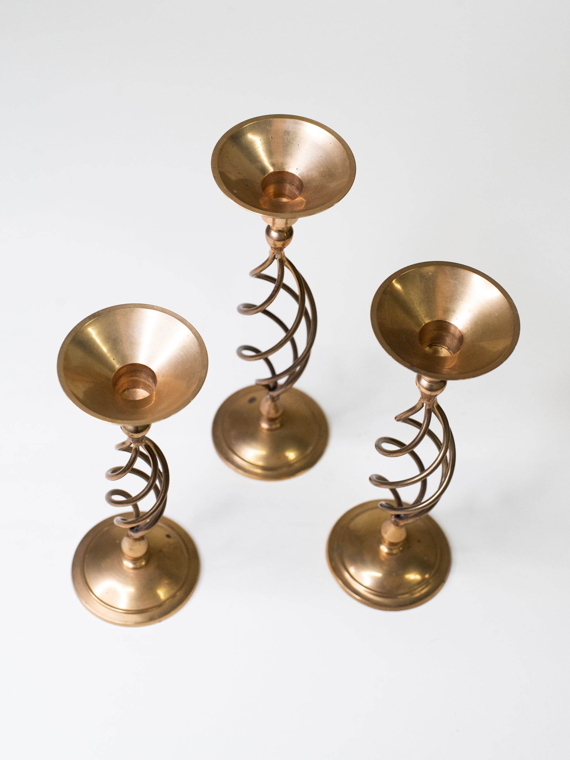 Handmade Mid-Century Brass Spiral Candleholders - Set of Three