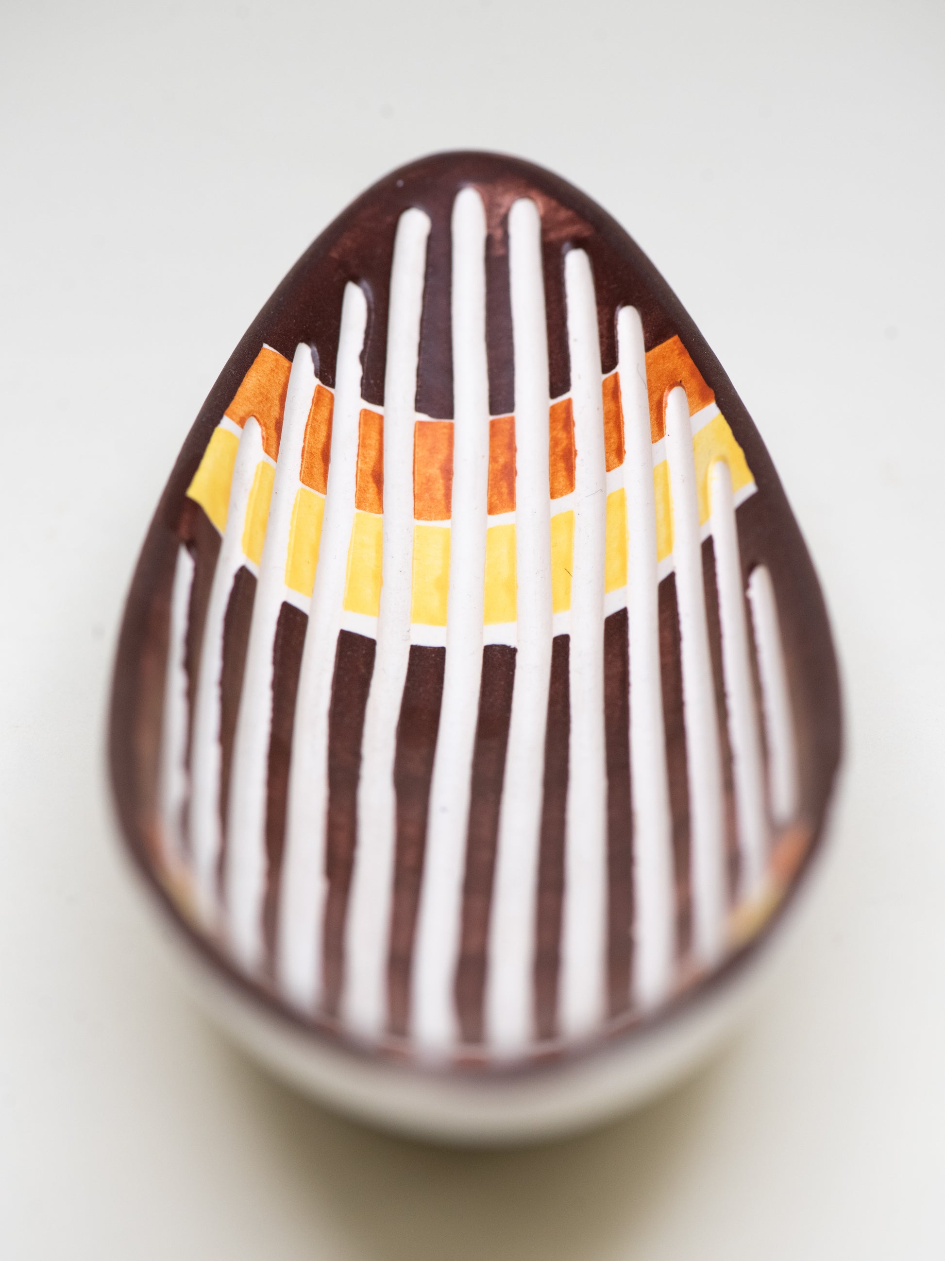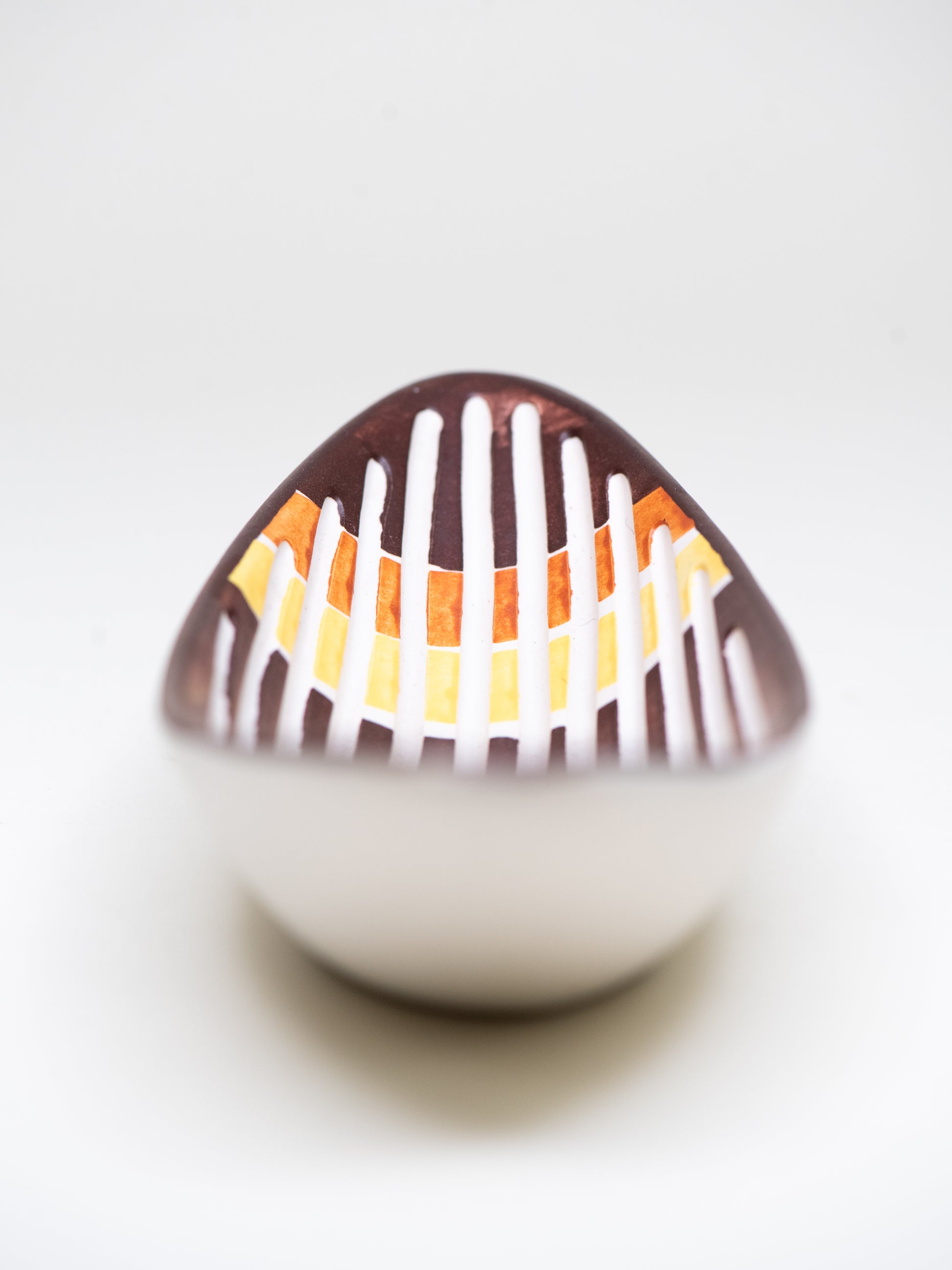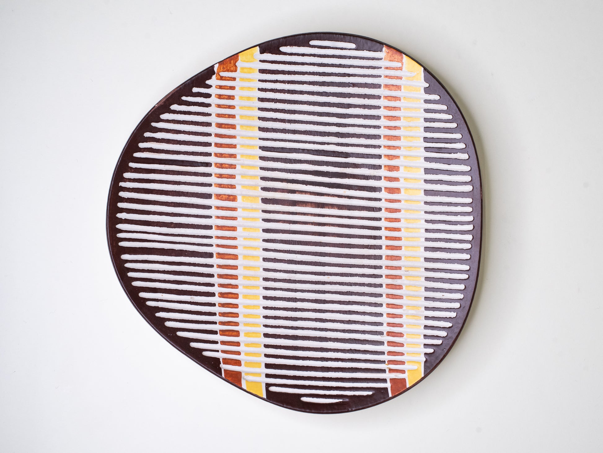 A stunning pair of hand-decorated ceramic dishes from West Germany, made in the 1950s in the Hawaii pattern - one of the most striking designs of the era. The rhythmic sgraffito lines and warm bands of brown, orange and yellow capture the optimistic, sun-soaked mood of postwar modernism.