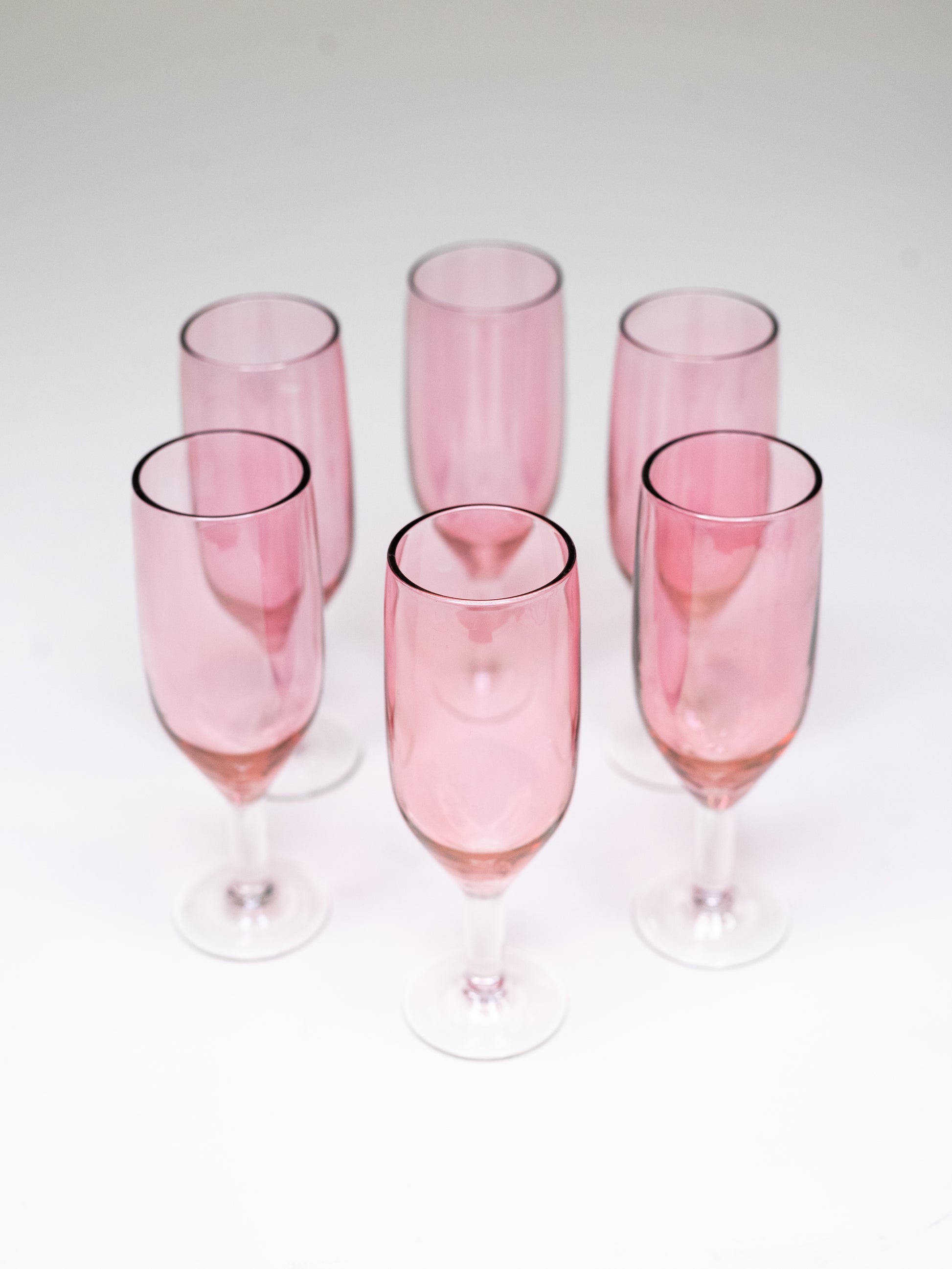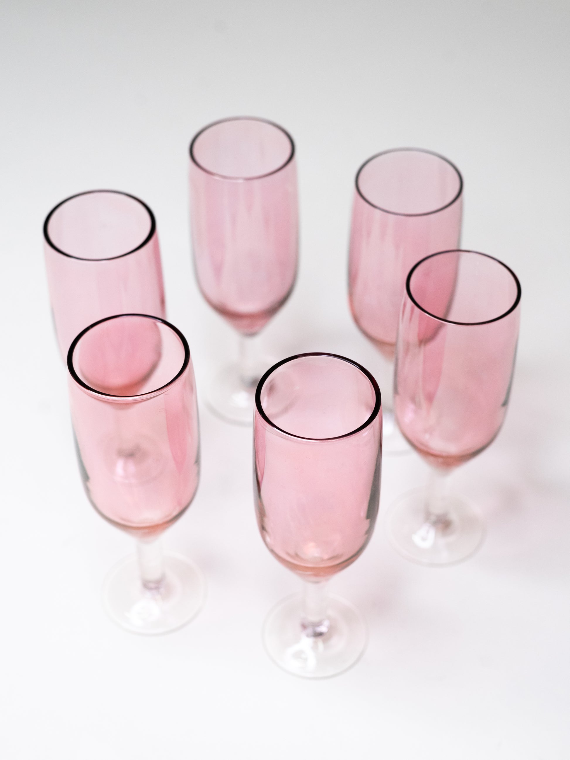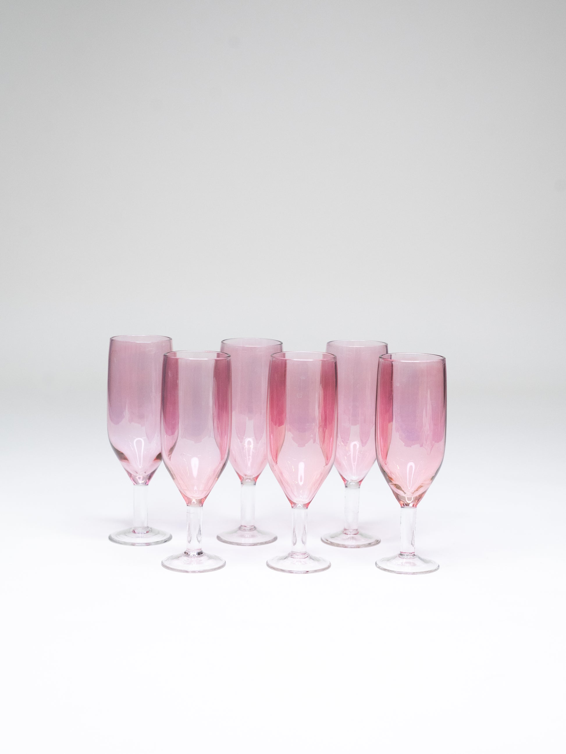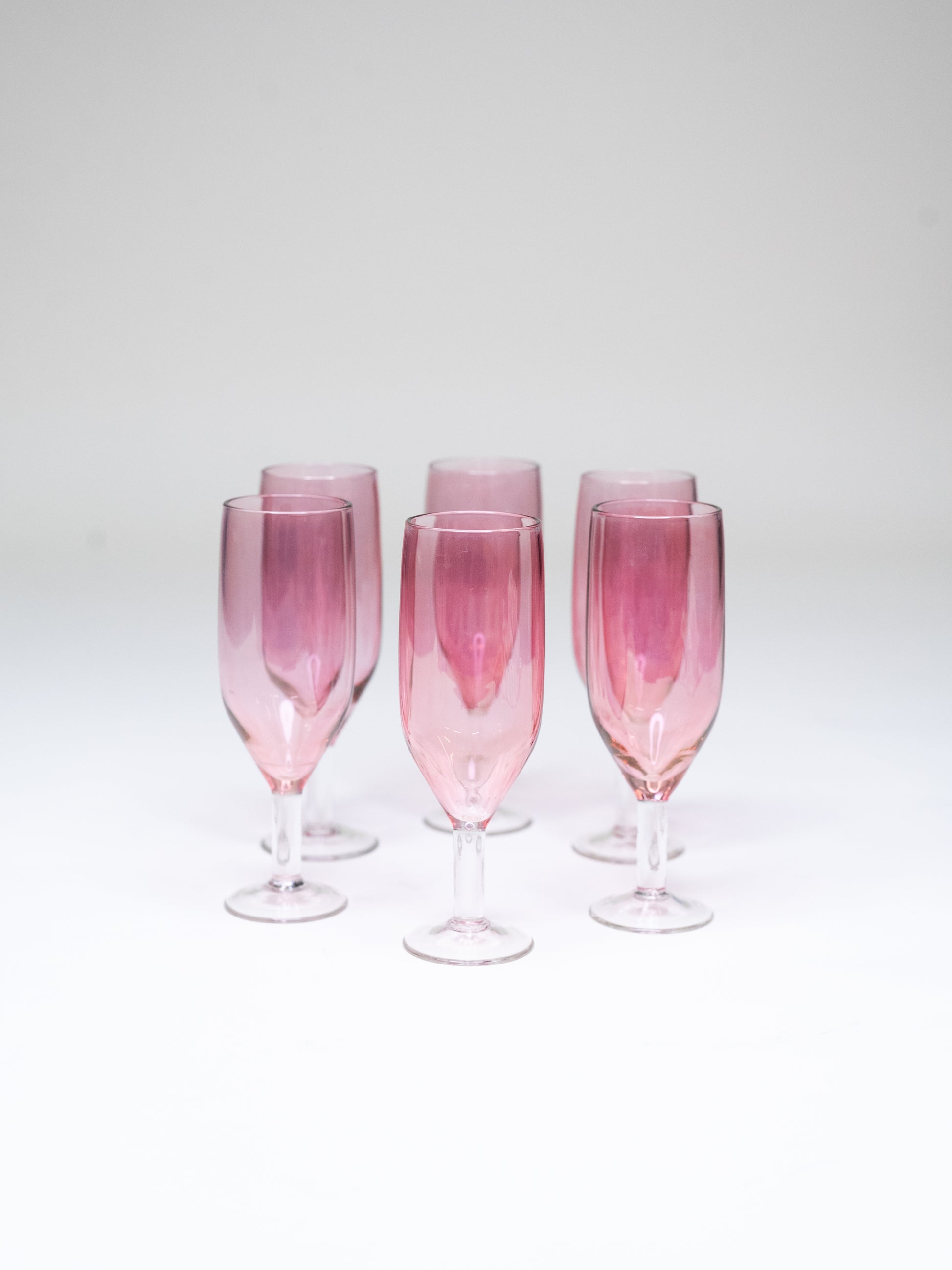 Mid-Century Pink Champagne Glasses - Likely Finnish - Set of 6
