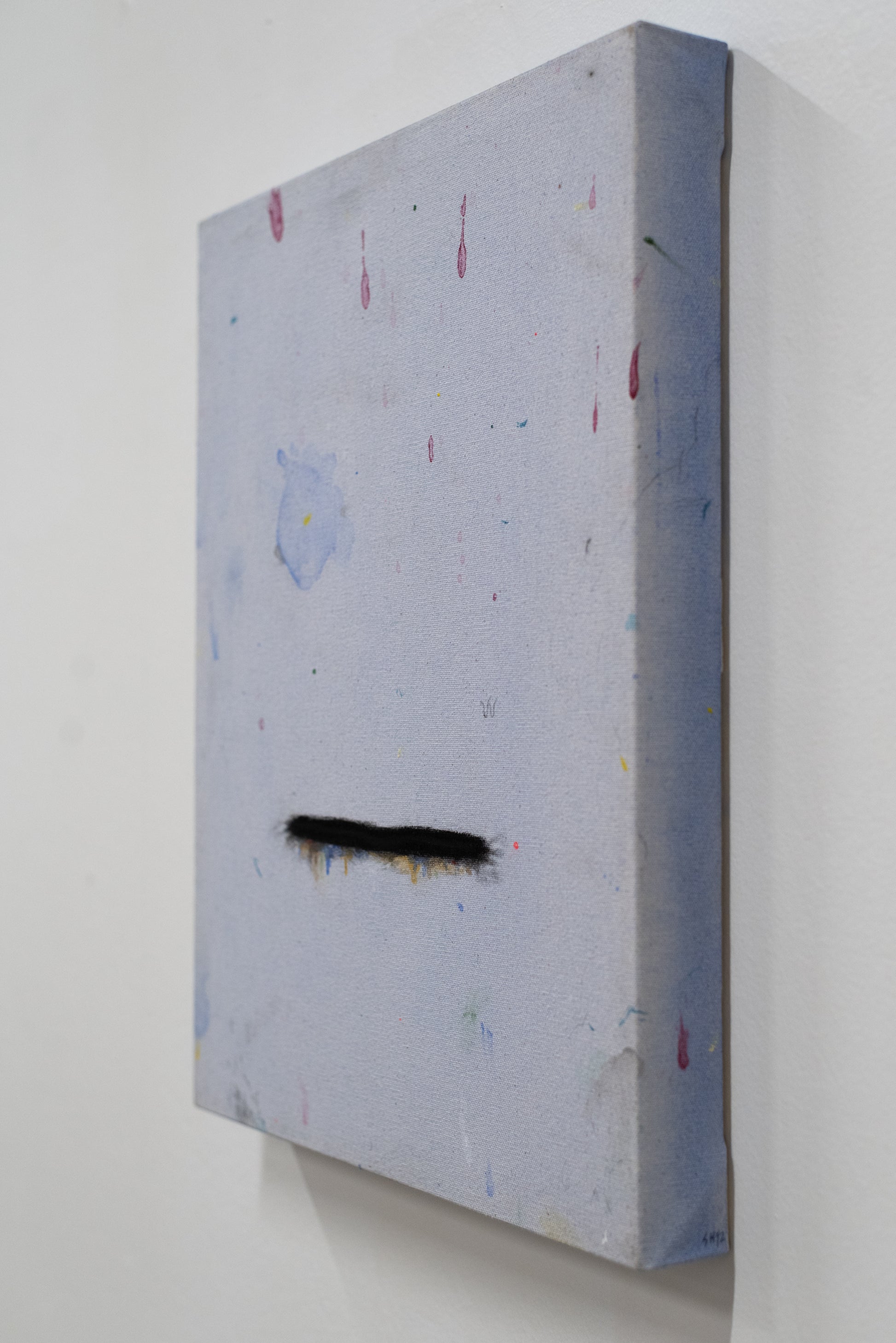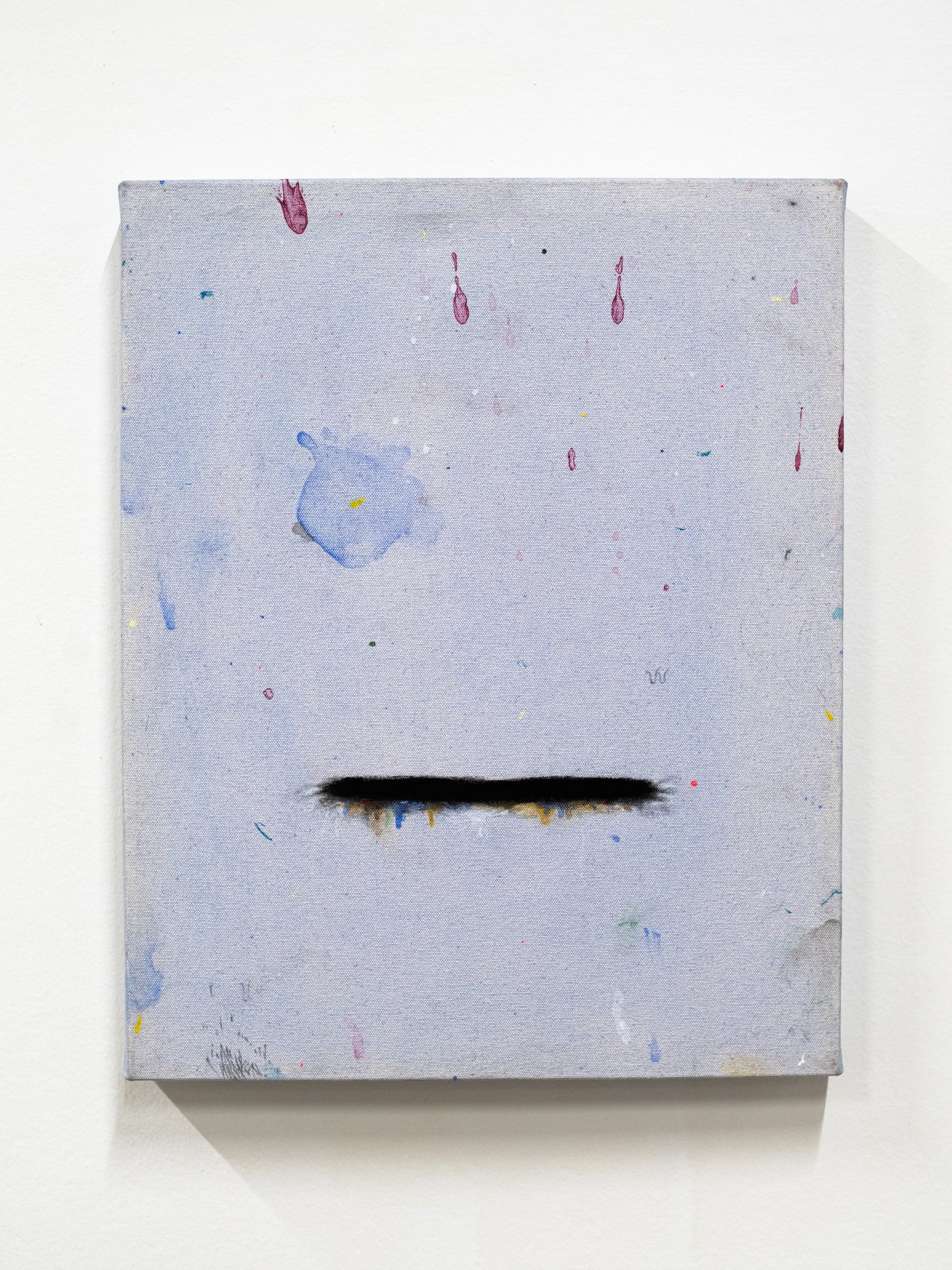 This work by Helsinki-based artist Sami Havia (b. 1982) distills his intuitive approach to painting into a minimal, almost meditative composition. A pale, misty ground is interrupted by a single dark slit - a gesture that feels both raw and precise, playful and unsettling.