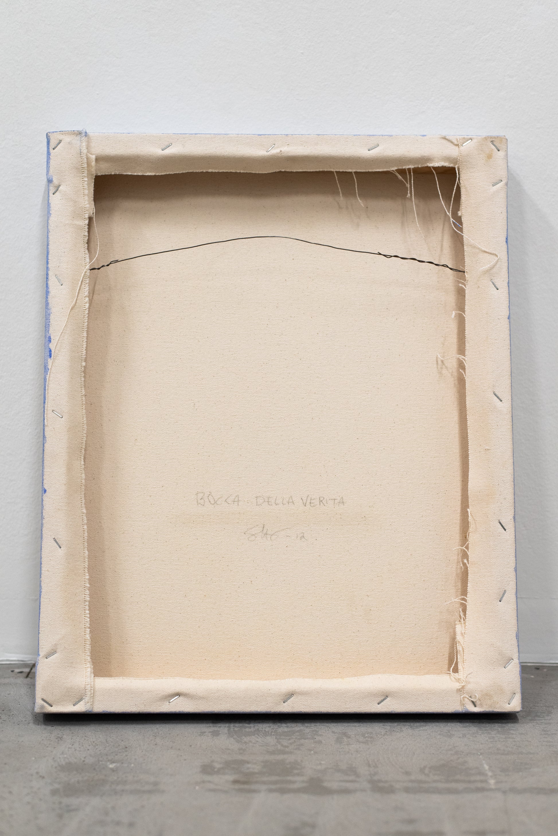 The title Bocca Della Verita (“Mouth of Truth”) hints at a quiet sense of drama and mythology, contrasting the subtle splashes of color and accidental marks across the surface. The result is a piece alive with restraint: a painting that holds its ground with quiet, magnetic presence.