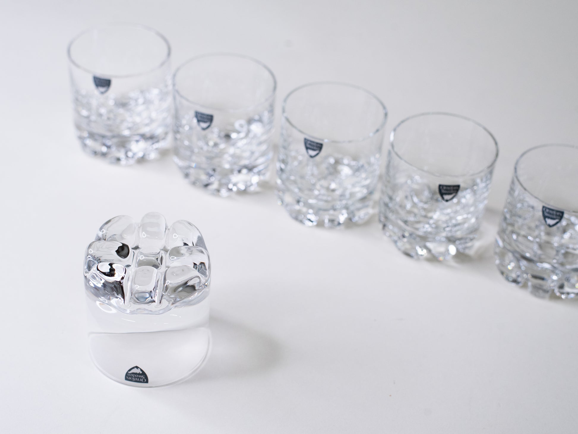 This set of six “Old Fashioned” glasses comes complete with the original Orrefors stickers and decades of good karma - untouched, crystal-clear, and ready to serve. Perfect for whiskey, digestifs, or anything that deserves a proper glass. Small, elegant, and built to last another lifetime.