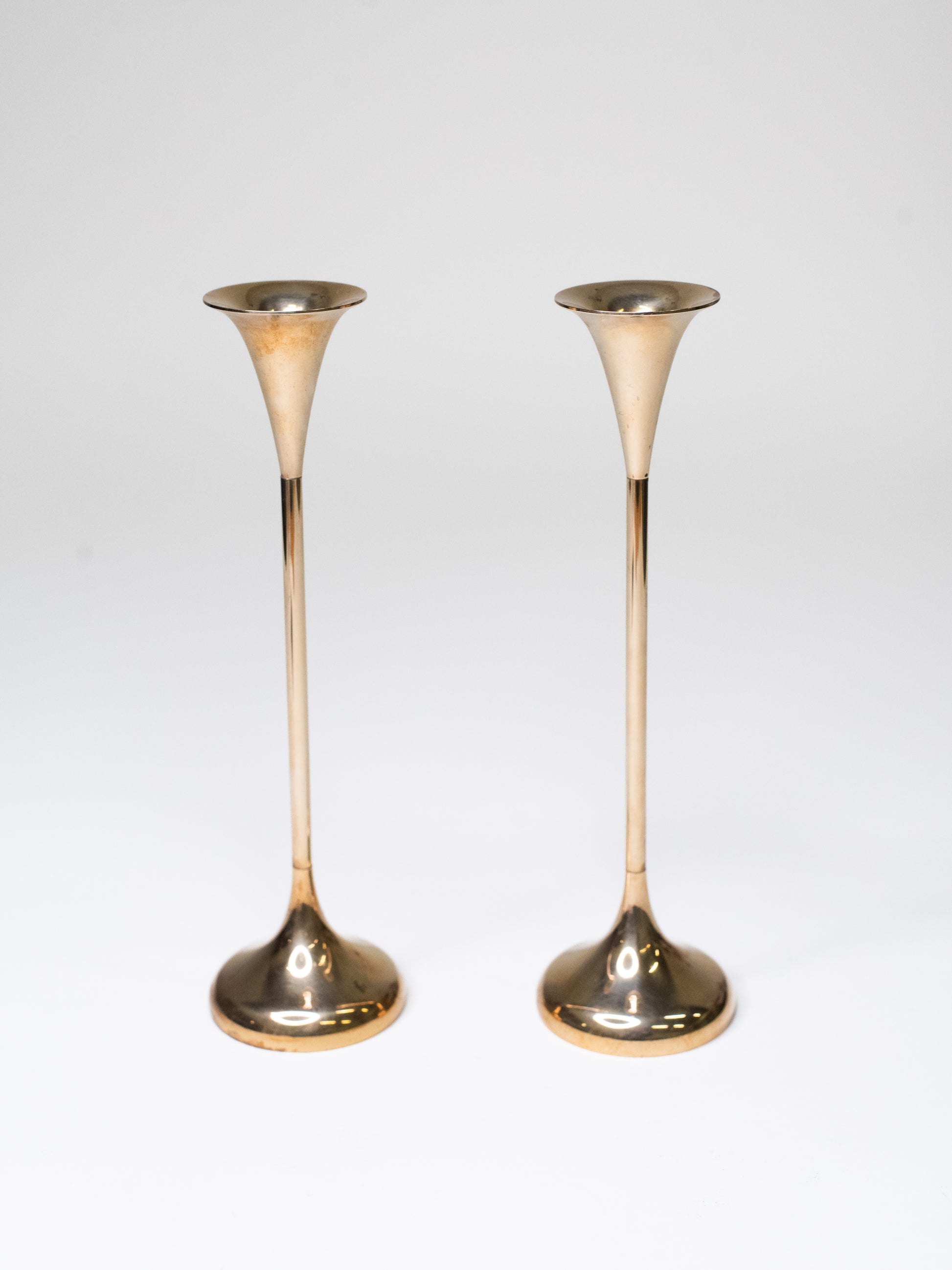 Pair of Tall Vintage Brass Candle Holders by Hyslop – Denmark, 1960s