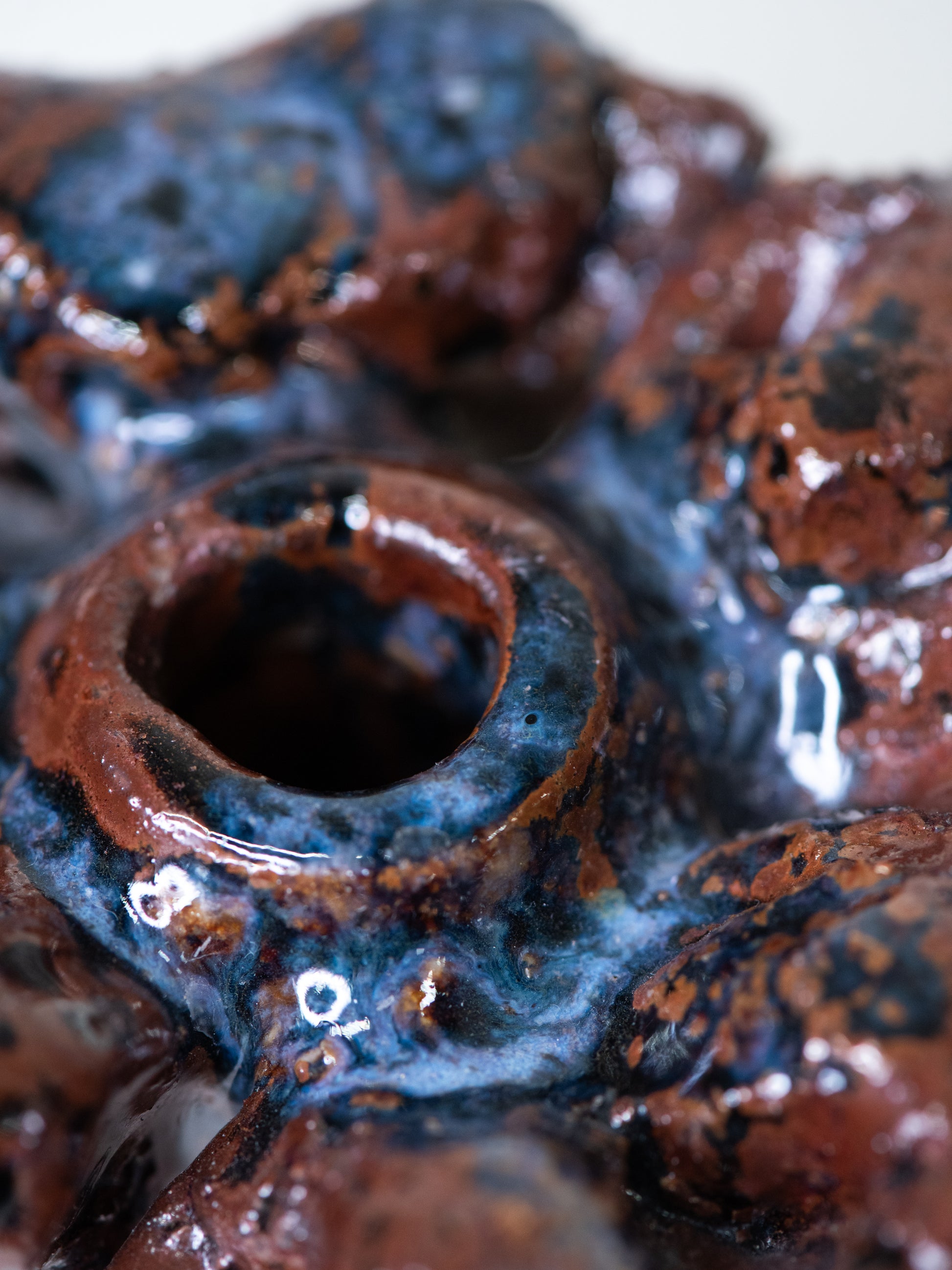 Pentik ‘Kaamoskivi’ Candle Holder in Brown and Blue - Finland, 1970s