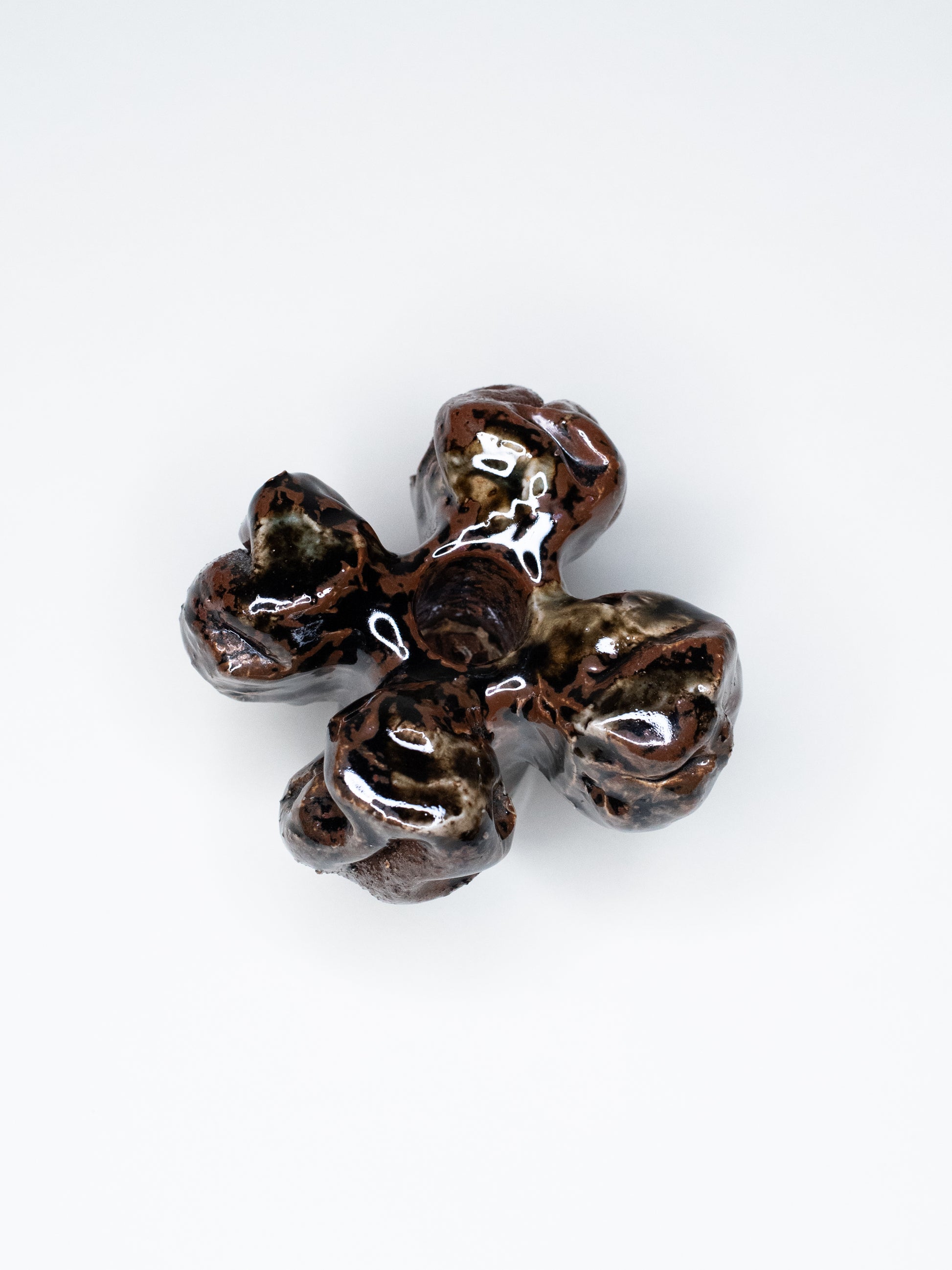 These candle holders are original studio pieces from the 1970s, made by hand in Pentik’s Posio workshop — not contemporary reissues. Because each one was shaped individually, the candle holes vary slightly, and sometimes the candle may need a small wrap of foil for support. For the best fit, we recommend Pentik’s Kaamos candles, originally designed for these holders and now back in production in Posio. They also work beautifully simply as objects — the organic forms and glazes make them easy to enjoy even without candles.