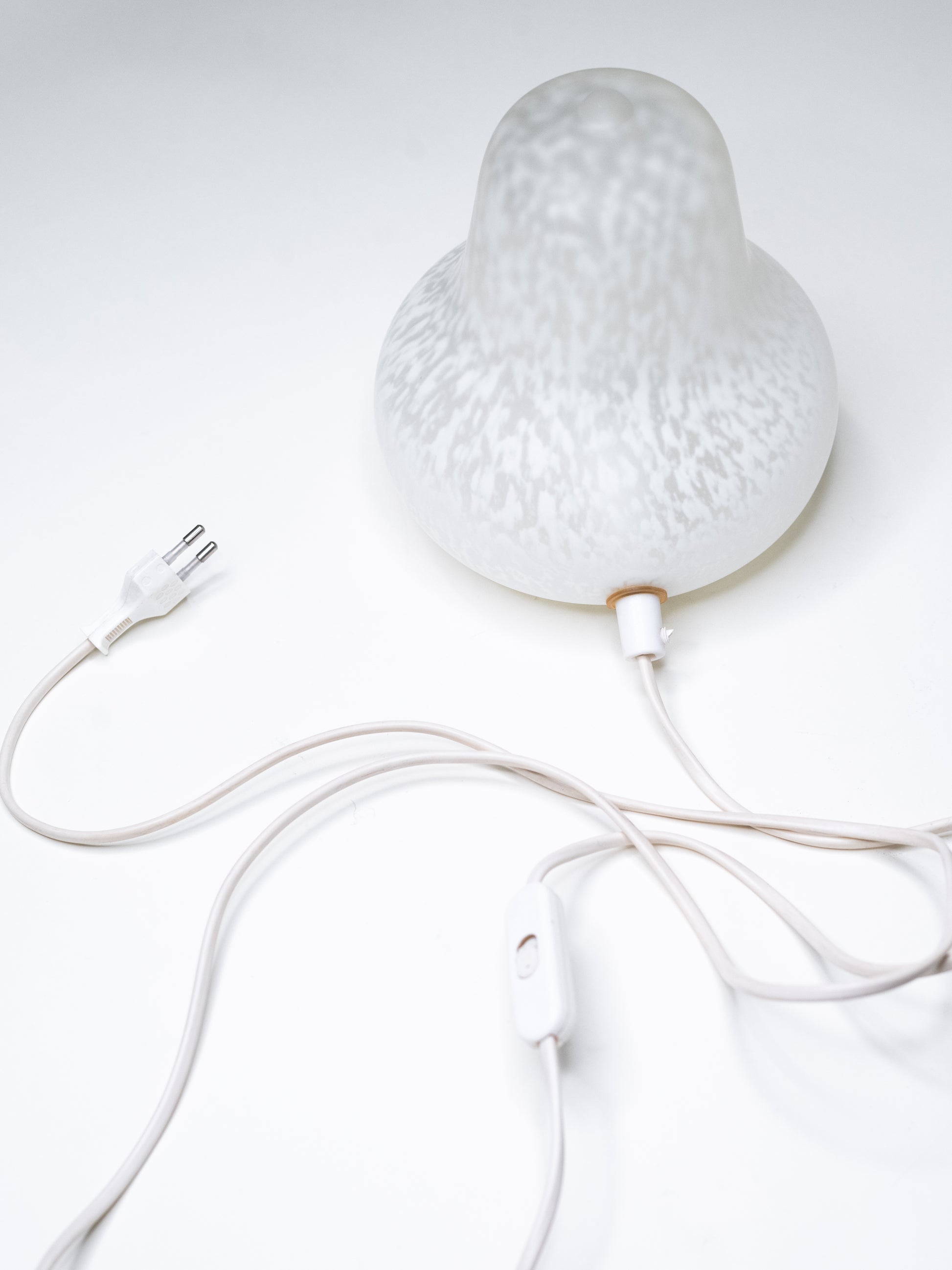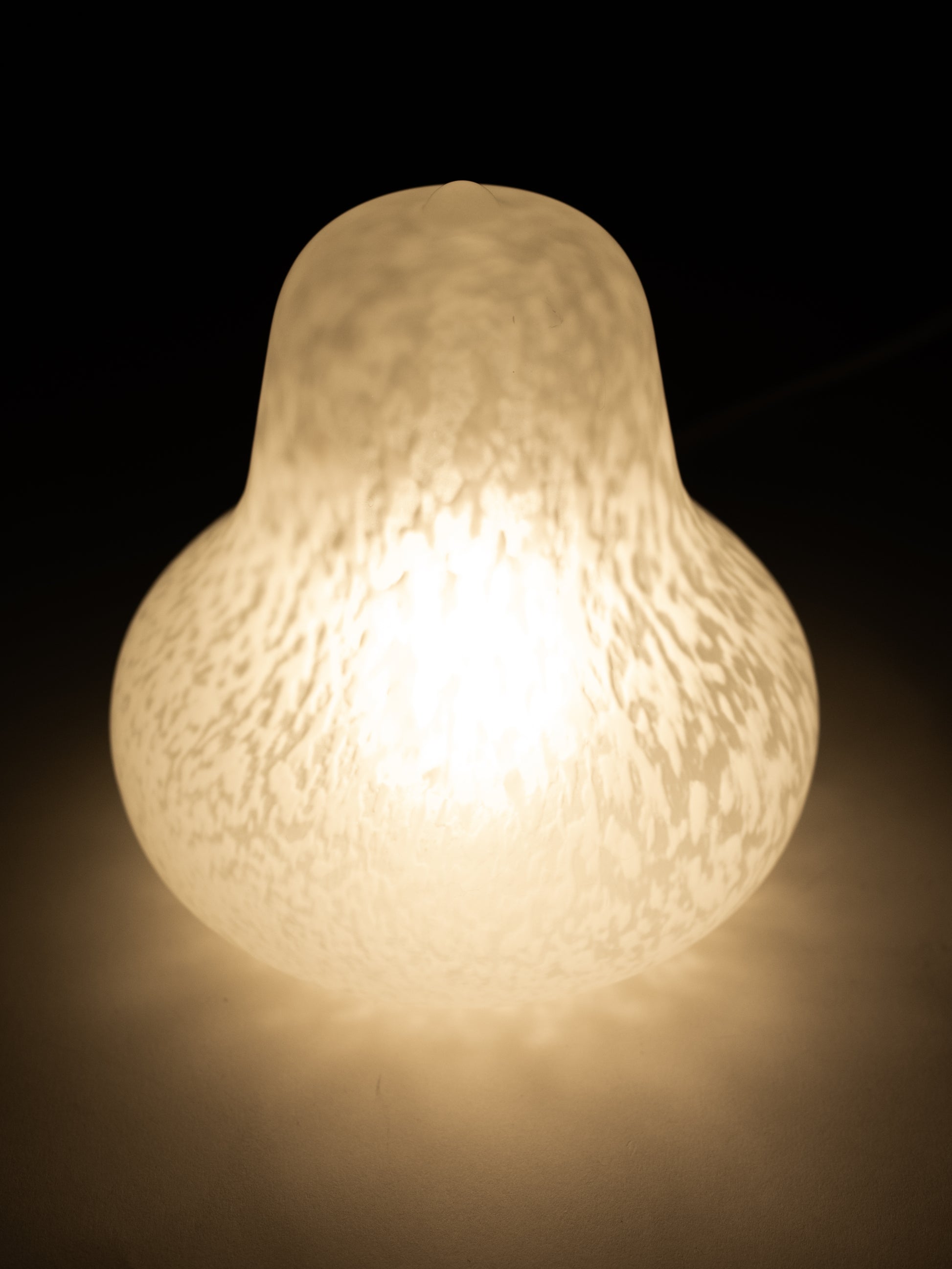 A good example of Backström’s more expressive side within Scandinavian design. The form is relaxed and slightly playful, while still grounded and easy to place. The glass has a soft, dense pattern that diffuses the light evenly. When lit, it gives off a warm, calm glow.