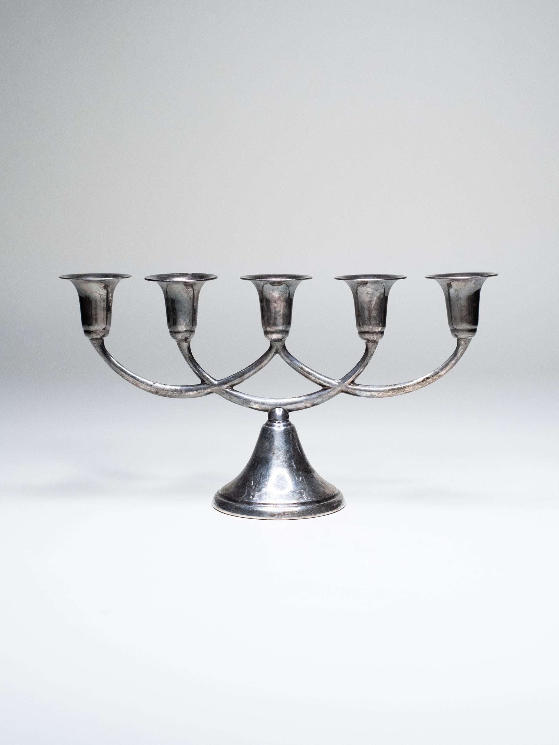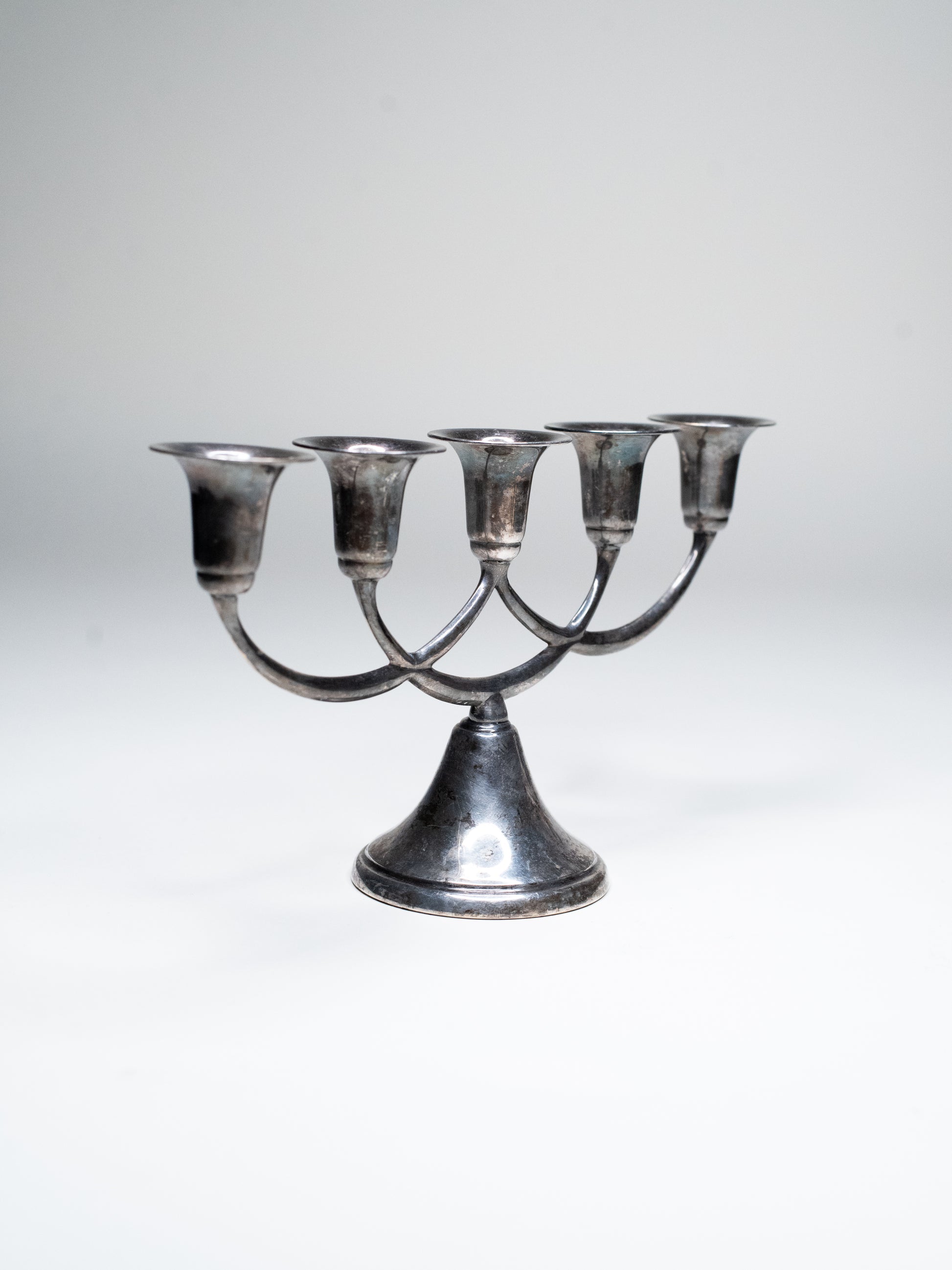 Vintage Scandinavian New Silver Five-Arm Candelabra
