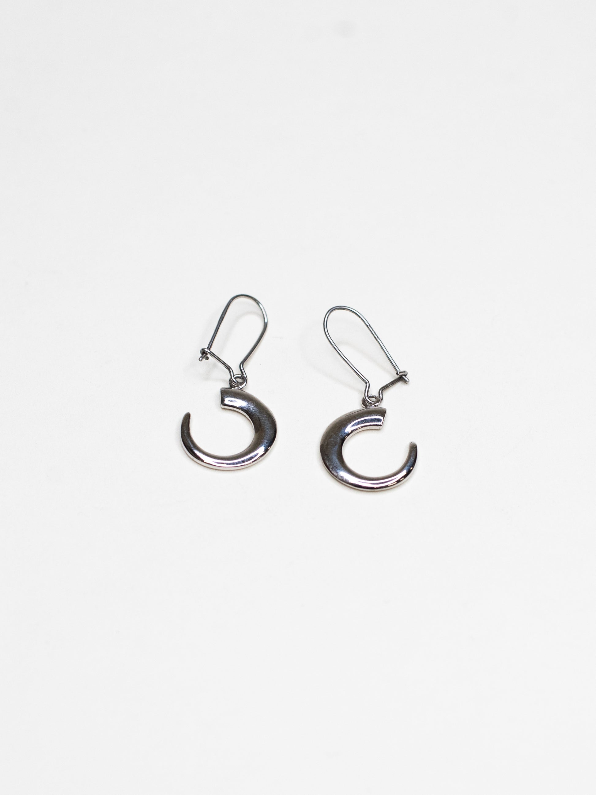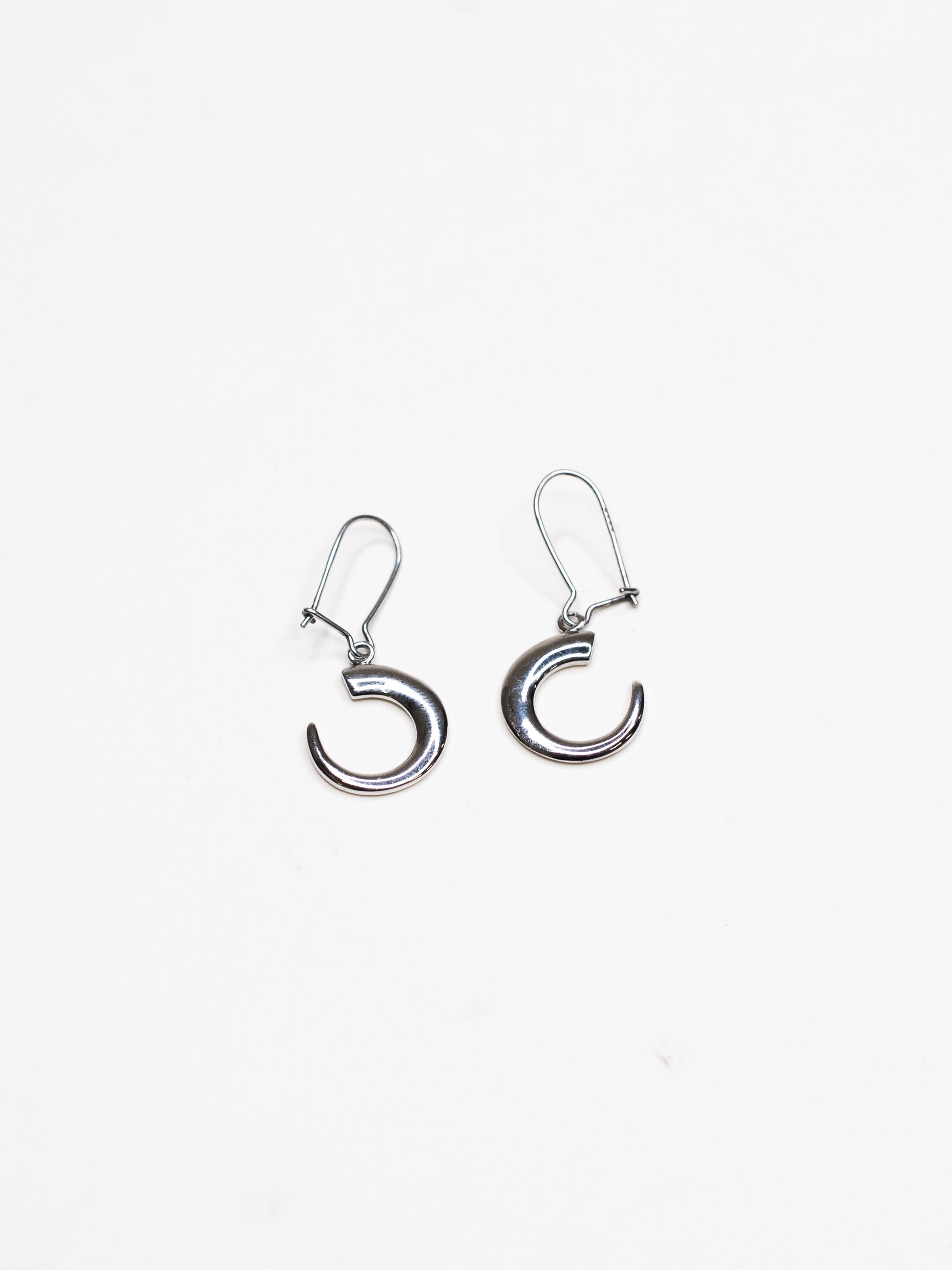 Designed by Tapio Wirkkala, these silver earrings from the Villisianhammas series are defined by their curved, inward-hooked form. Compact but substantial, with a smooth, polished surface and a satisfying weight that keeps them steady on the ear.