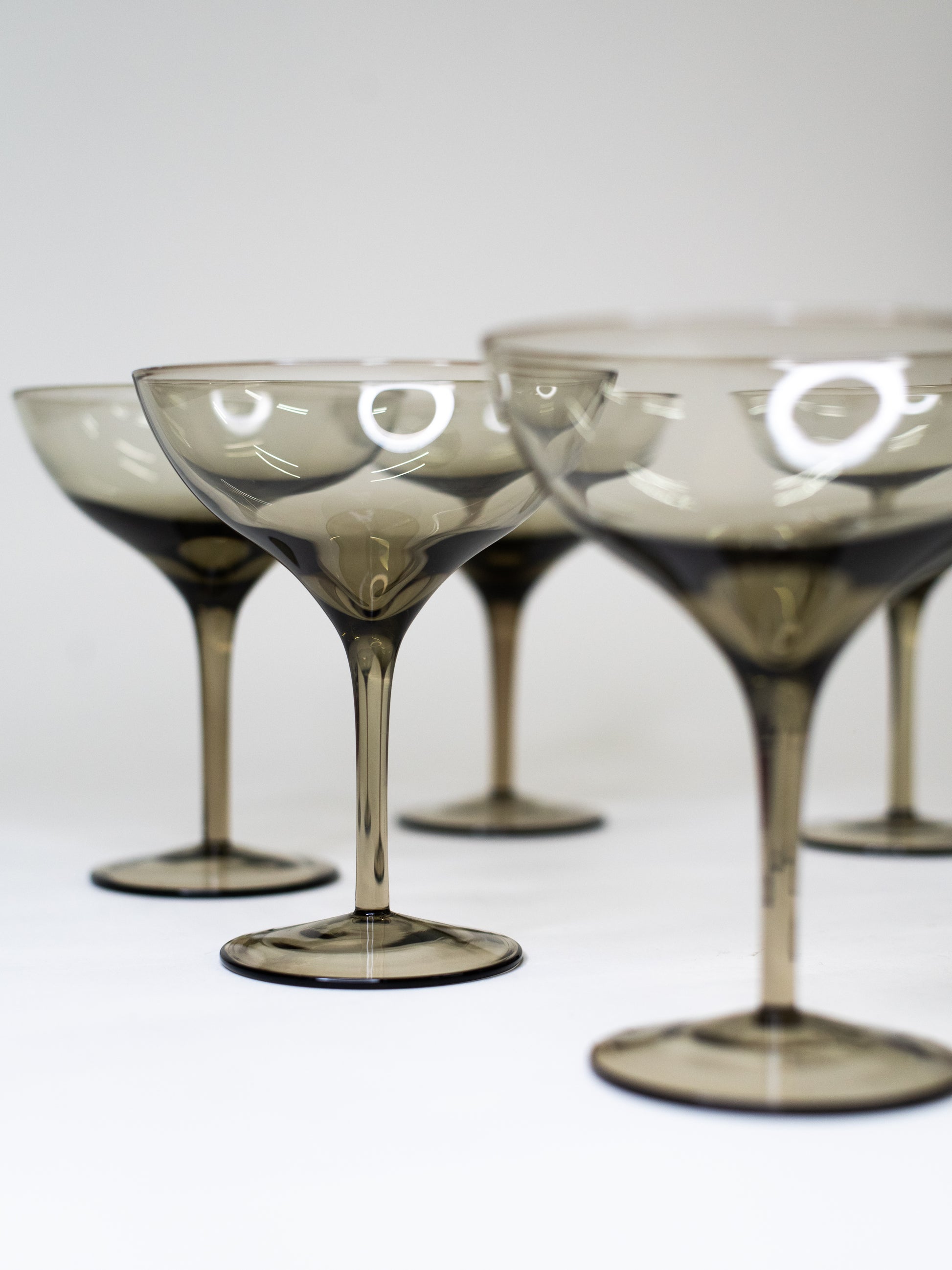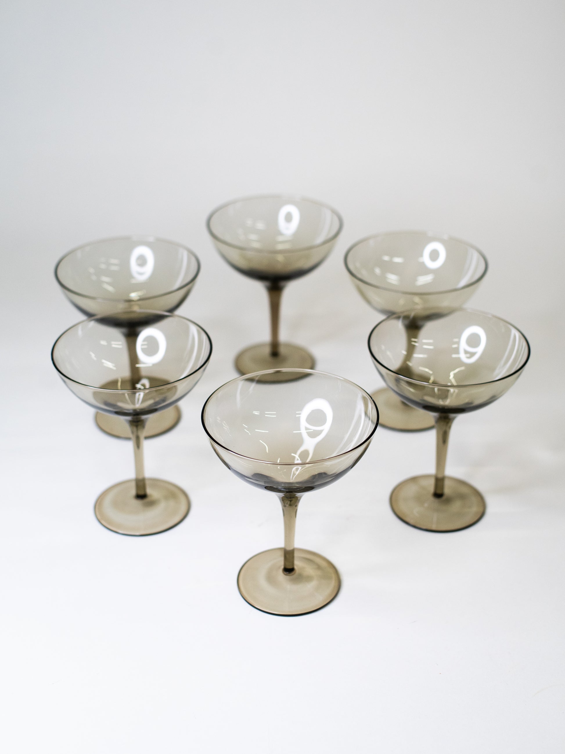 Vintage Smoky Glass Coupes - Europe, Mid-Century – Set of 6