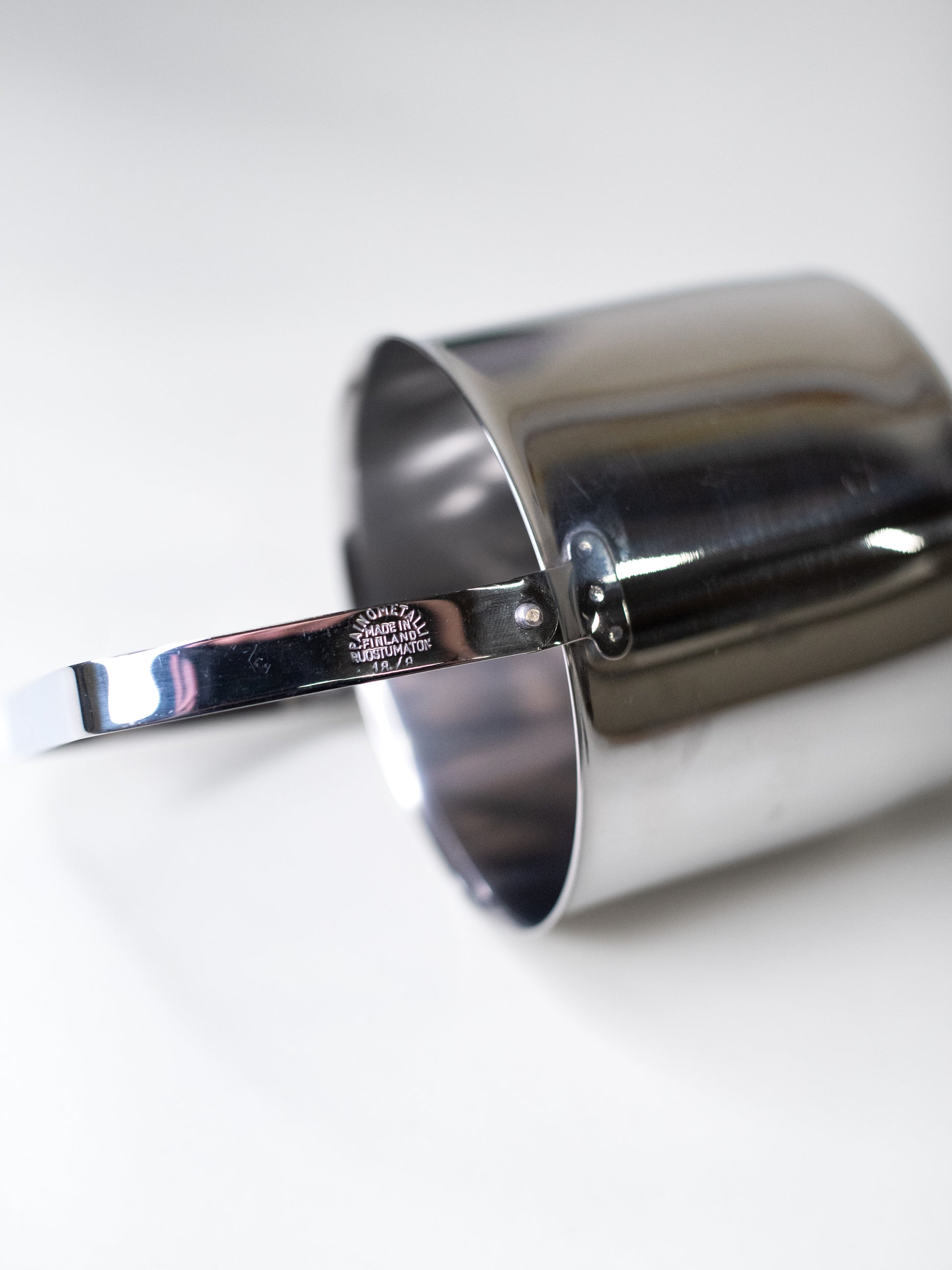Painometalli was a Finnish manufacturer known for producing high-quality stainless steel items for the kitchen and bar. Their work from the 1960s–70s reflects the era’s focus on clean design, durability, and everyday elegance.
