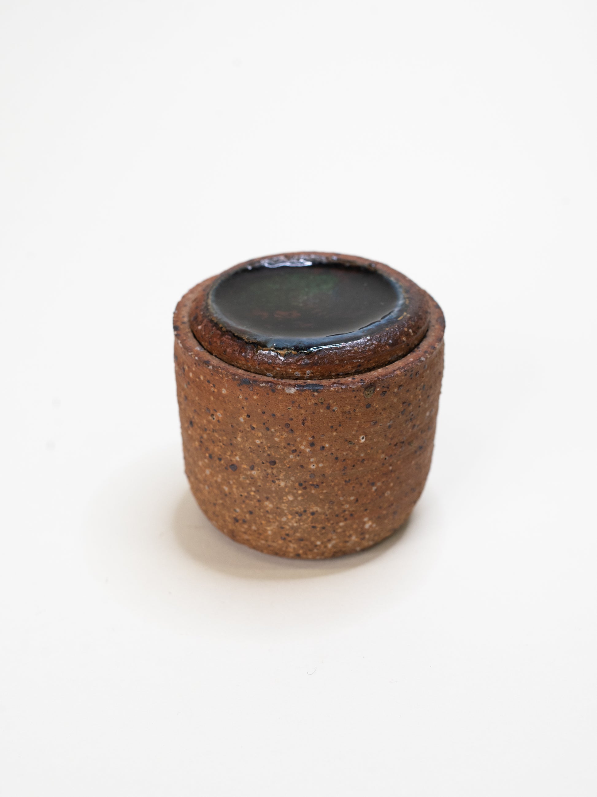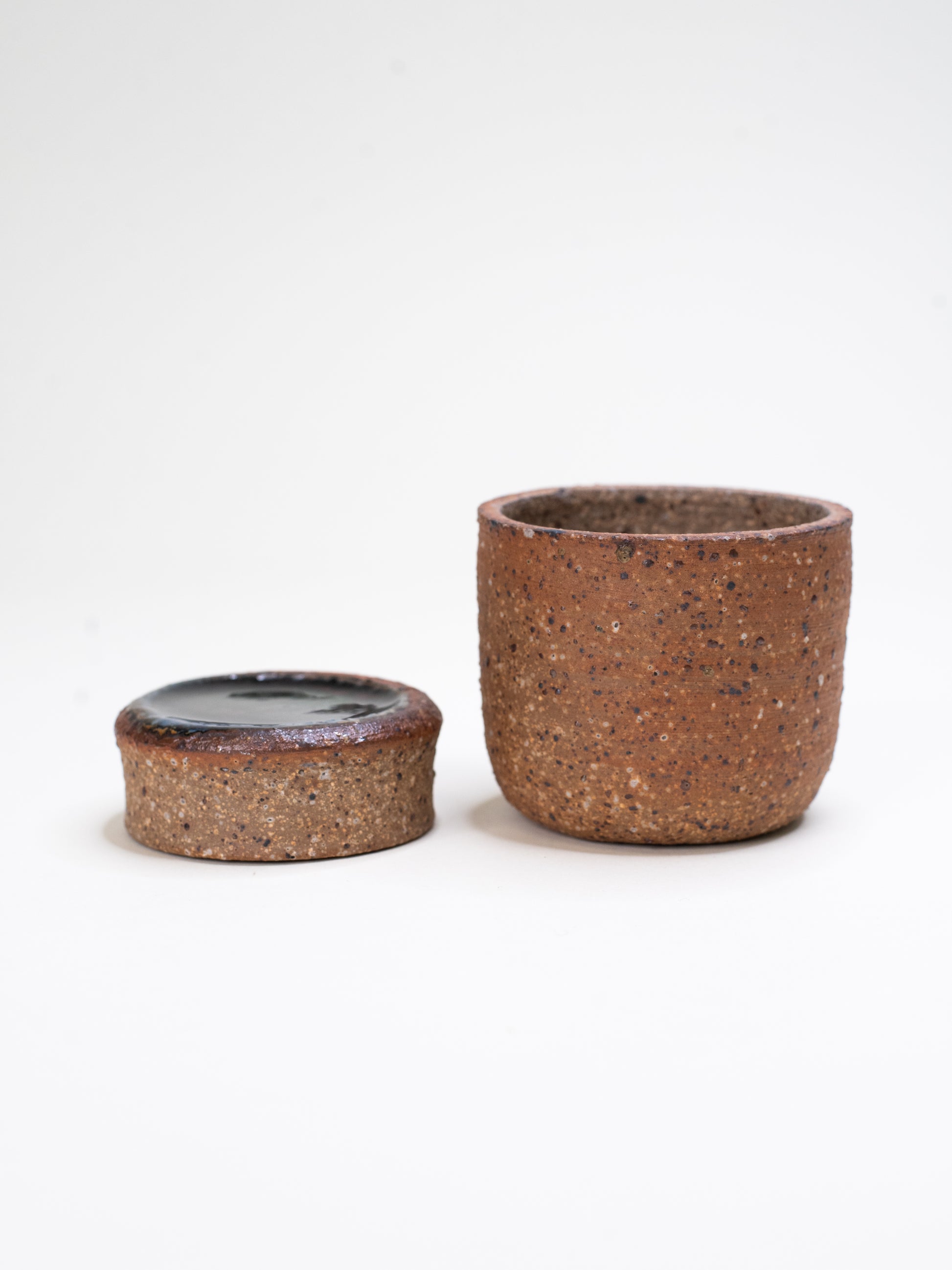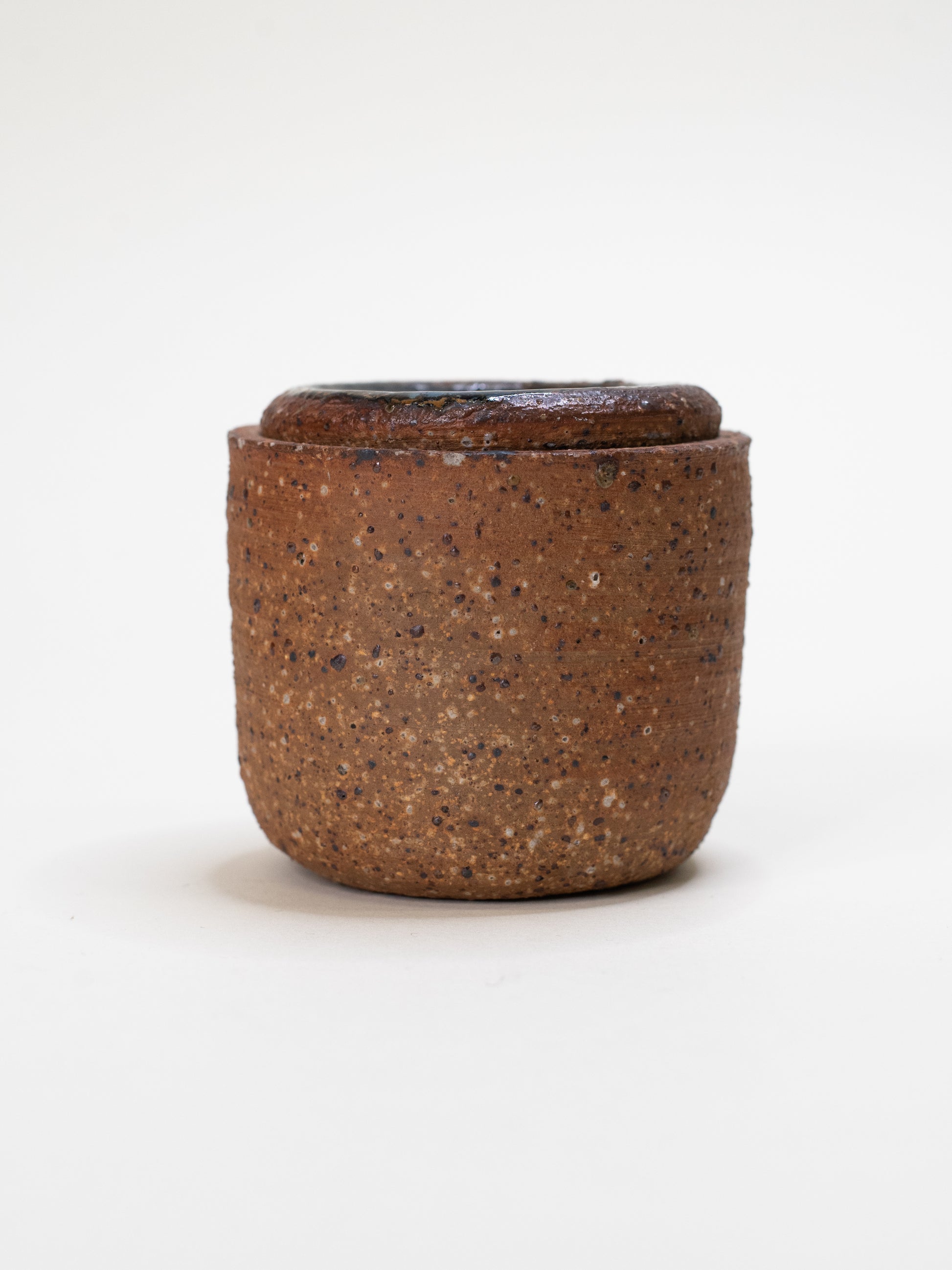Studio ceramics from the mid-century era often embraced raw materials, bold glazes, and functional forms — this is a timeless example of that balance. Perfect for salt, small essentials, or simply as a sculptural object with quiet impact.