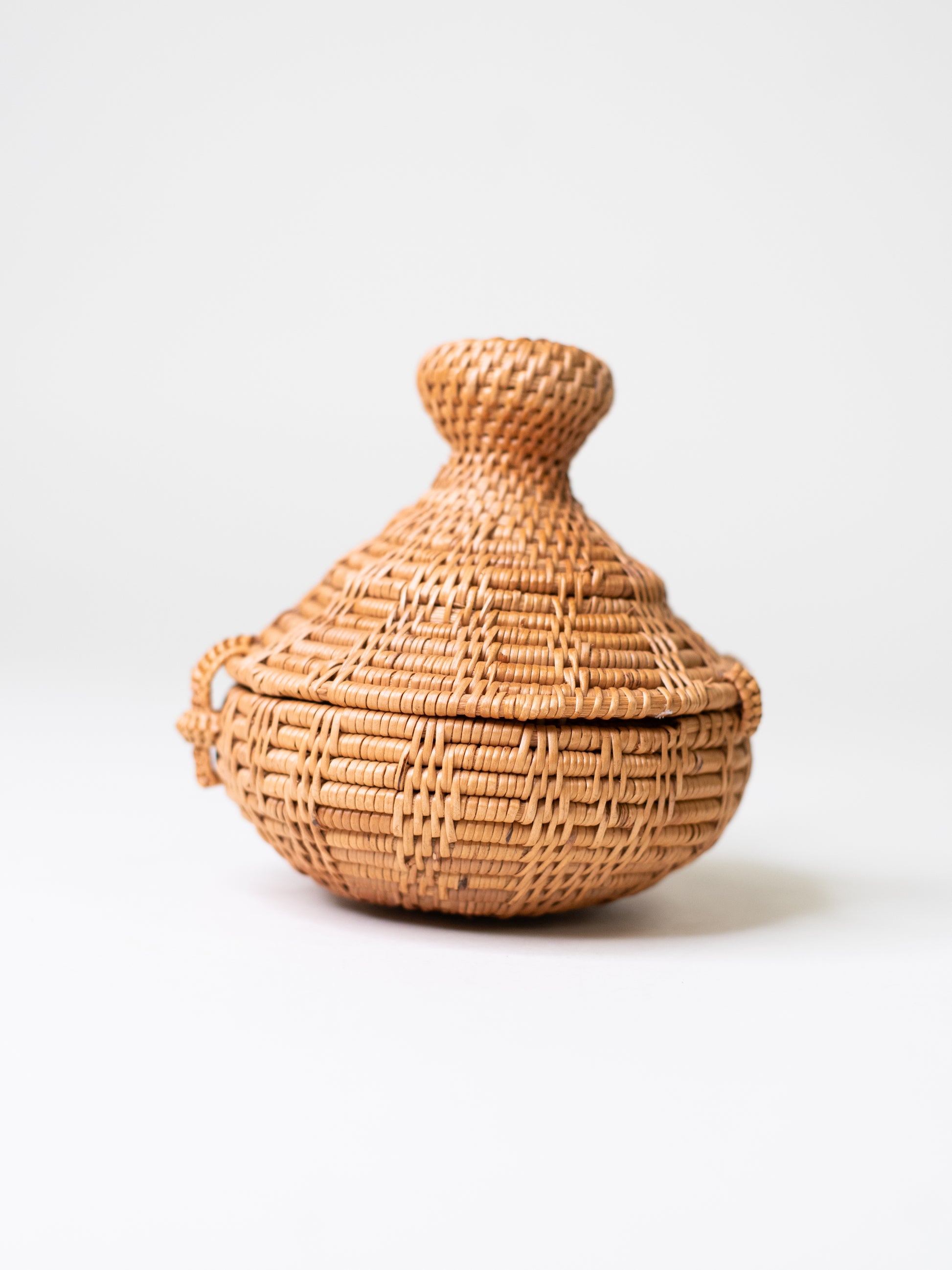 This small basket, with its rounded base and tall flared lid, shows the precision and rhythm of true craftsmanship. The weave is tight and consistent, giving it a sculptural quality that feels both modern and timeless - a perfect example of how Balinese artisans balance utility and beauty.